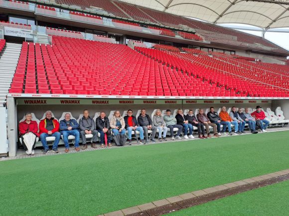 Am 26.3.2025 fuhren wir nach Stuttgart wo uns eine junge, kompetente Führerin durch die MHP-Arena (früher Neckarstadion) begleitete. Sie führte uns durch die zahlreichen Räume die bei den Spielen des VfB von den Spielern und den Zuschauern benutzt wurden. Dazu gehörten die Umkleideräume, die Duschen, die Fitnessräume, die VIP-Räume und die Gaststättenräume. Danach gings hinunter zum Spielfeld, das jedoch nicht betreten werden durfte. Anschließend waren wir zu Gast in der Vereinsgaststätte des Polizeisportvereins Stuttgart, wo wir unser Mittagessen einnahmen.