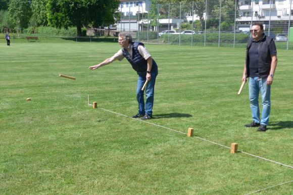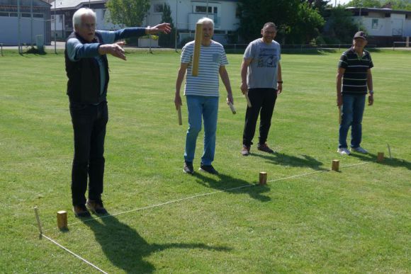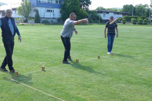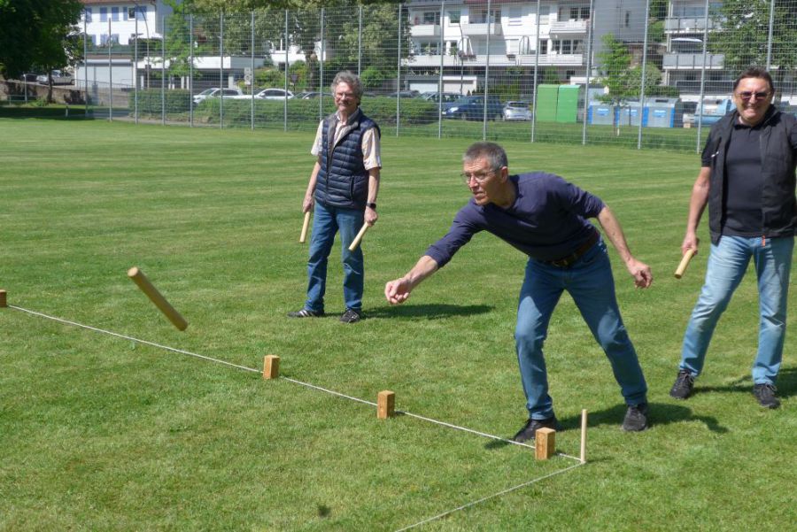 Am 7.5.2025 spielten wir wieder einmal Kubb (Wikinger-Schach) auf dem alten Sportplatz in Endersbach. Nach 5 hart umkämpften Spielen gewann das Team Peter S., Rainer A., Karle, Stefan H. und Walther knapp mit 3:2 gegen das Team Geno, Rainer M., Hartmut, Berti und Dieter. Anschließend waren wir wieder zu Gast bei Halim im DiMeglio.