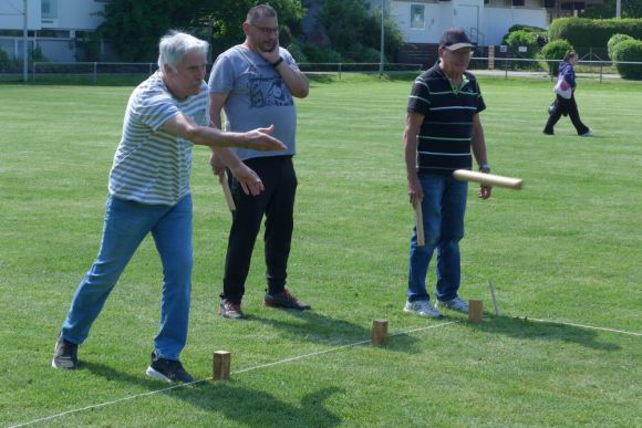 Nachdem wir zwei mal wegen starkem Regen unser Billitz-Spiel absagen mussten, klappte es am 13.8.2025 auf dem alten Sportplatz in Endersbach. Nach 3 hart umkämpften Spielen gewann das Team Peter H. Armin, Rainer A., Angelos, Stefan T. und Rainer M. mit 2:1 (79:152, 201:189, 242:138) gegen das Team Geno, Werner, Peter S., Karle, Hartmut und Volker. Anschließend feierten wir in Karles Garten mit einem tollen Essen und exquisiten Getränken Werners Geburtstag. Wir bedanken uns bei ihm für die Bewirtung und wünschem ihm für die Zukunft alles Gute.