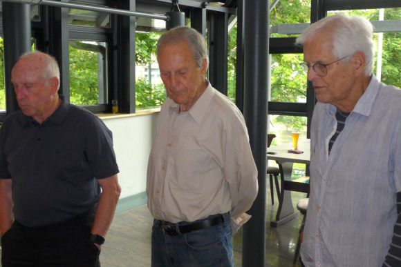 Am 21.5.2025 spielten wir zum 2. mal in diesem Jahr Boule beim alten Sportplatz in Endersbach. Es gewann das Team Rainer A. und Peter S. mit 3 Siegen (13:9, 13:4, 13:6) vor dem Team Werner und Walther mit 2 Siegen (13:0, 4:13, 13:8), dem Team Wolfgang und Peter H. mit 1 Sieg (9:13, 13:4, 8:13) sowie dem Team Stefan H. und Rainer M. - dieses mal ohne Sieg (0:13, 4:13, 6:13). Anschließend gabs bei Halim im DiMeglio wieder das gewohnt hervorragende Essen.