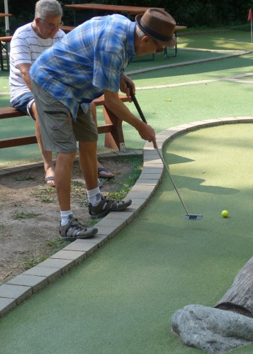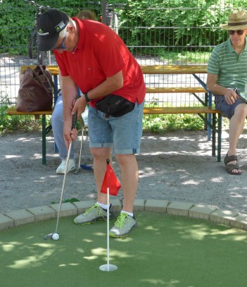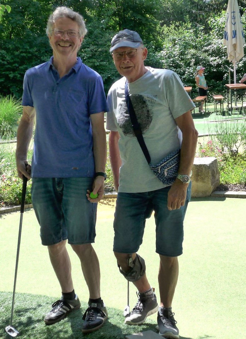 Am 18.6.2025 spielten wir Minigolf auf der Anlage in Wablingen. Aufgeteilt auf drei Gruppen gewann nach 18 Bahnen Rainer A. (47 Schläge), vor Hartmut (52 S.), Karle, Walther und Wolfgang (jeweils 54 S.), Geno (56 S.), Berti (58 S.), Stefan T. (59 S.), Peter H. und Rainer M. (beide 61 S.) sowie Volker (76 S.). Anschließend waren wir zu Gast in der Gaststätte Sachsenheimer in Waiblingen.