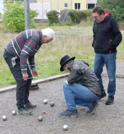 15 Rentner trafen sich am 5.11.2025 beim alten Sportplatz in Endersbach zum Boule-Spiel. Da die einzelnen Spiele entgegen den Erwartungen sehr lange dauerten, konnten jede Mannnschaft nur 2 Spiele anstatt den üblichen 3 Spiele durchführen. Es gewann das Team Walther, Stefan H., Wolfgang und Karle (2 Siege 13:11, 11:10) vor dem Team Angelos, Geno und Werner (1 Sieg 13:4, 10:11), dem Team Stefan T., Armin, Peter S. und Peter H. (1 Sieg 11:13, 11:4), und dem Team Rainer A., Rainer M., Dieter S. und Dieter W. (2 Niederlagen 4:13, 4:11) Anschließend waren wir zu Gast im Rössle in Endersbach.