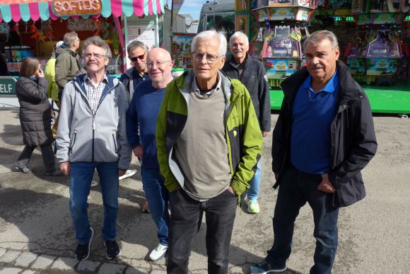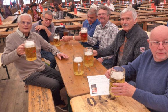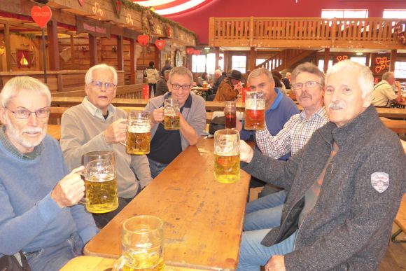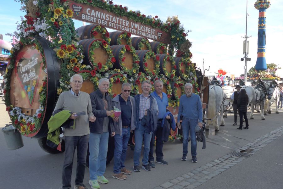 Am 8.10.2025 besuchten wir das Volksfest in Bad Cannstatt. 7 Rentner fuhren mit der S-Bahn zum Cannstatter Bahnhof von wo es dann zu Fuß auf das Festgelände ging. Nach einem ausführlichen Rundgang vorbei an den zahlreichen Buden landeten wir im großen Hofbräuuzelt wo wir einige Maß Bier und ein opulentes Essen zu uns nahmen. Anschließend gings wieder auf einen ausführlichen Spaziergang über das Gelände wo nochmal ein kühles Bier auf uns wartete.