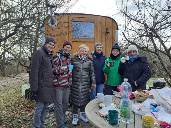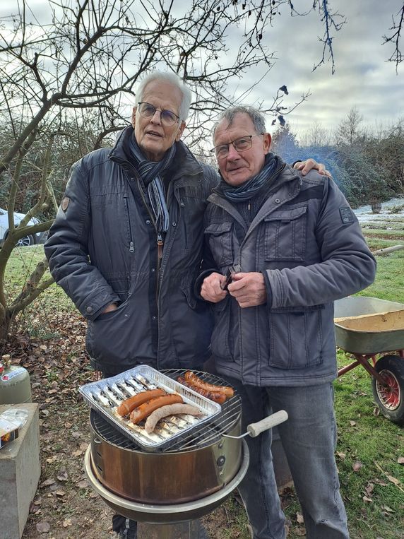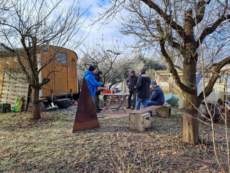 Karle hatte am Silvestermorgen 2025 zum Vorglühen - im wahrsten Sinne des Wortes - auf sein Stückle eingeladen. Bei trockener Kälte und sonnigem Wetter ließen wir es uns beim Grillen und beim Glühwein gutgehen.