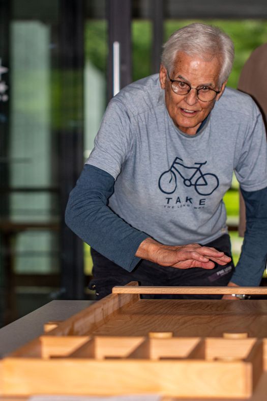 Nachdem es am 4.6.2025 den ganzen morgen nach Regen aussah hatten wir beschlossen, statt im Freien Billitz zu spielen bei Halim im Obergeschoß Shuffle Board zu spielen. Nach 8 hart umkämpften Spielen hatten alle 3 Teams die gleiche Punktzahl, so daß es ein Stechen geben mußte. Hier gewann das Team Walther, Hartmut, Werner und Karle mit 66 Punkten vor dem Team Geno, Rainer M., Peter S. und Dieter mit 40 Punkten knapp vor dem Team Wolfgang, Volker, Rainer A. und Armin mit 38 Punkten. Herzlichen Dank an Volker, der uns anschließend im DiMeglio anläßlich seiner 1. Telnahme mit einigen Vierteln vom Roten verwöhnte. Dafür bedanken wir uns ganz herzlich.