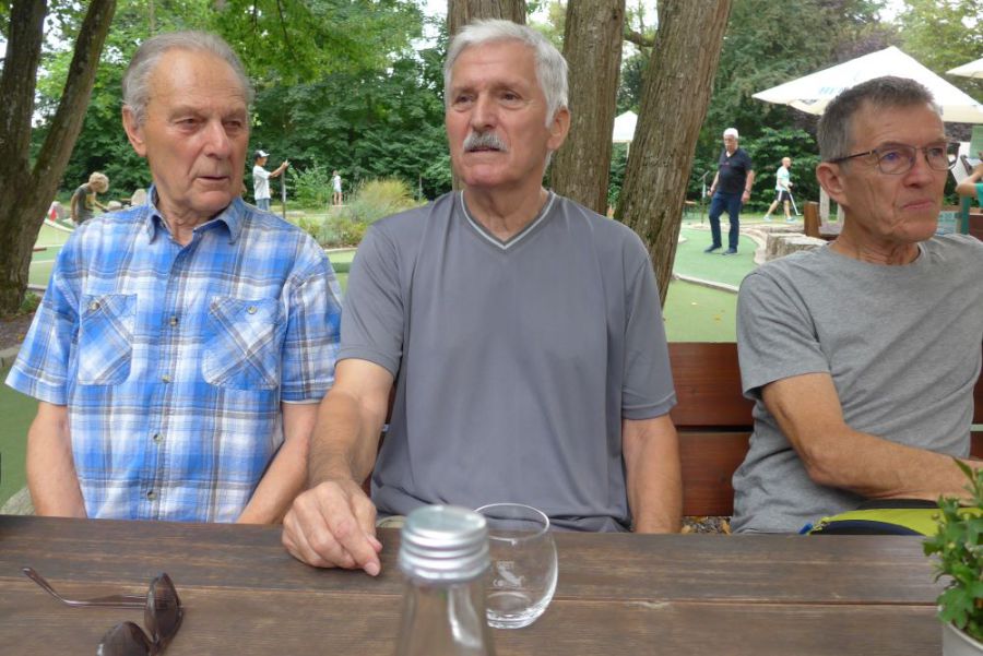 Am 27.8.2025 spielten wir Minigolf in der Waibinger Talaue. Nach 18 hart umkämpften Bahnen gewann Rainer A. mit 45 Schlägen vor Karle (51 S.), Rainer M. (57 S.), Peter S. (59 S.), Peter H. (62 S.), Geno (63 S.). sowie Hartmut und Berti mit jeweils 64 S. Anschließend gab es in der Marktgassse beim Sachsenheimer wieder ein hervorragendes Essen.