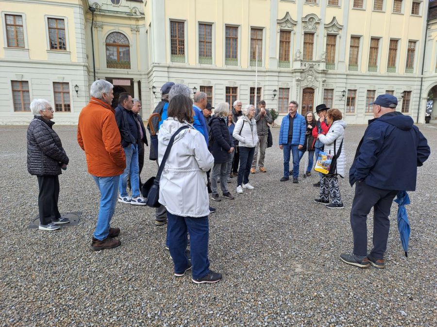 Dieses Mal (am 22.10.2025) führte unser Städtetrip nach Ludwigsburg. Unsere fachkundige und freundliche Stadtführerin erzählte uns alles über die Stadtgründung, den Bau des Ludwigsburger Schlosses sowie die Taten und Untaten der württ. Herzöge und Könige. Beim Gang durch die Stadt erzählte sie uns Geschichten über berühmte Persönlichkeiten die in Ludwgsburg gelebt haben wie z.B. Casanova, Mörike, Justinus Kerner und Mozart. Anschließend kehrten wir in der "Brauerei zum Rossknecht" ein. Wie es sich für eine Brauerei gehört kam das Bier schnell - mit dem Essen dauerte es etwas länger - obwohl die Bedienung fast überall gleichzeitig war.
