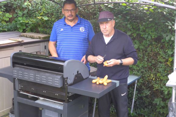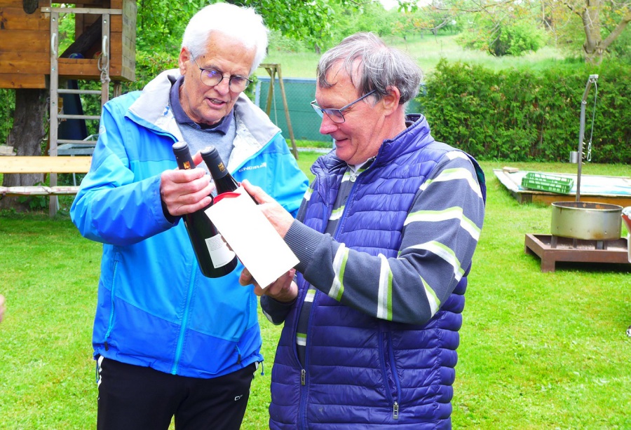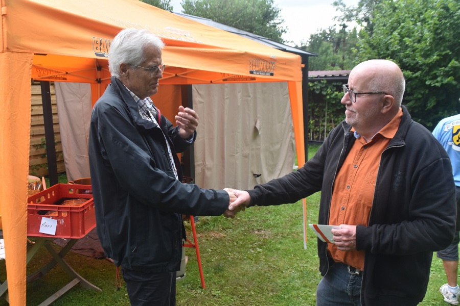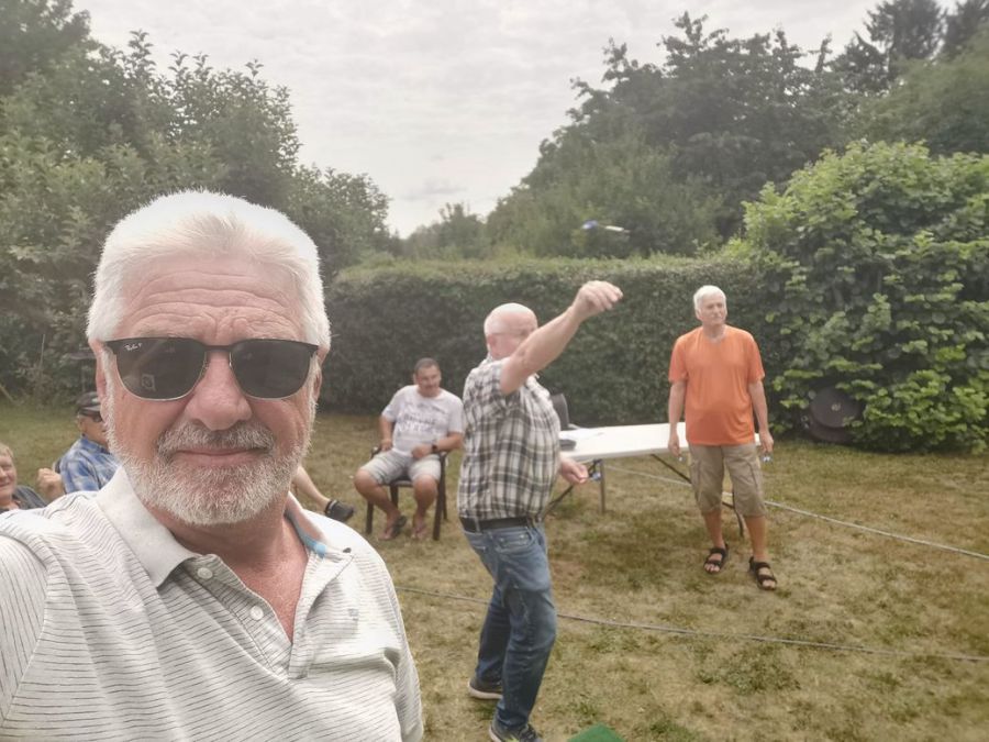 Feier zum 70. Geburtstag von Karle und Darts im Garten am 17.5.2023